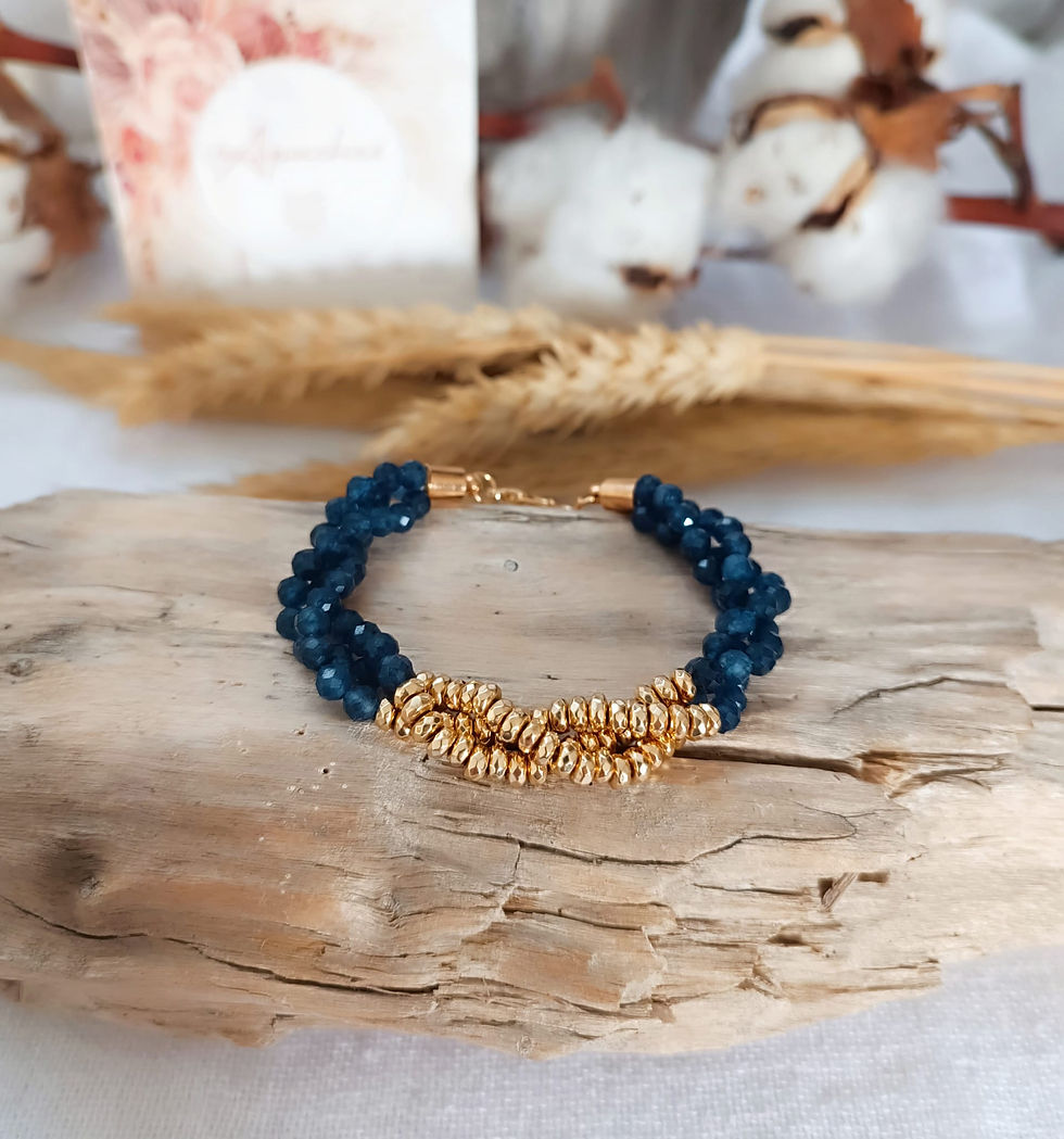 Bracelet "Mantra" Aigue Marine plaqué argent