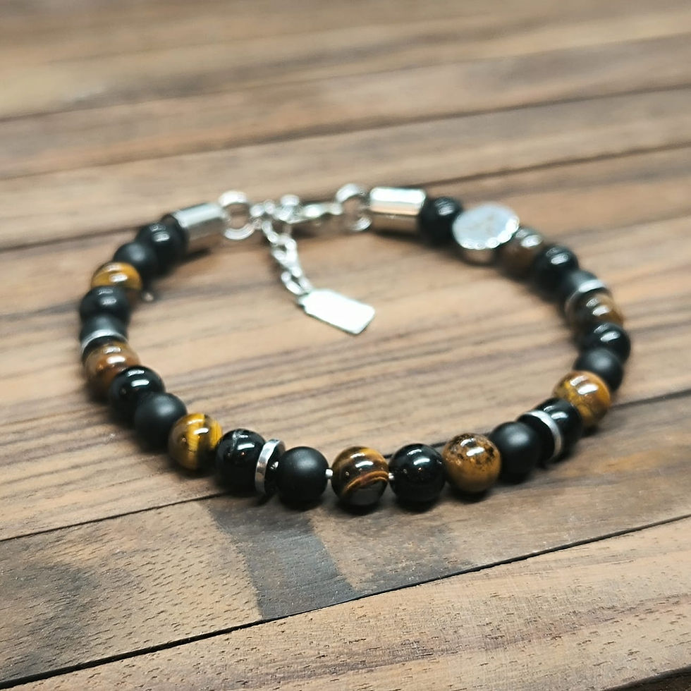 Bracelet Heishi Oeil de tigre et onyx brillant